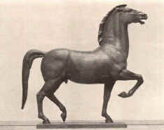 Op de foto een paard door Thorak, uit een duo voor in de tuin van de Rijkskanselarij. Rechts de Nachtmerrie.