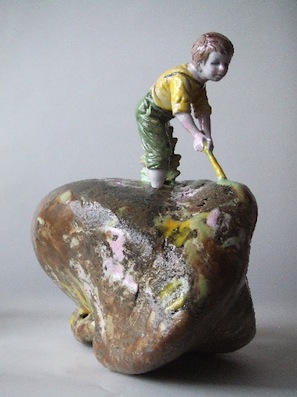 Archeologie is ooit begonnen als een fantasie wetenschap in de negentiende eeuw. Mijn artefacten ontstonden mede als vervolg op de Organen. Mislukte artefacten lijken het wel, soms koddig. Het begon met de serie gebouwen die in een houtoven gestookt werd. Het resultaat was alsof het werk was opgegraven. Dat voedde de gedachte aan de ouderdom van mysterieuze vormen in gebakken klei. Verval kan dus aantrekkelijk zijn.