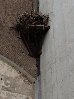Daarna volgde de bouw en retraite in het zelfgebouwde Nest (zie foto boven) aan de buitenwand van de Meelfabriek in Leiden, waarvan verslag in bovenstaand telefoongesprek.